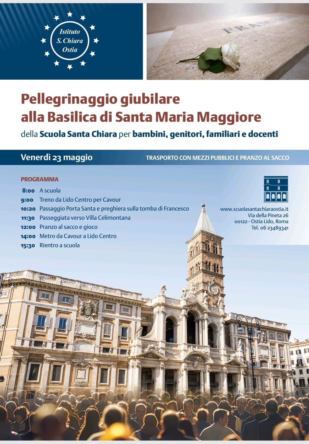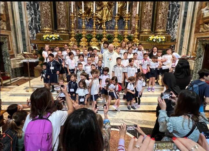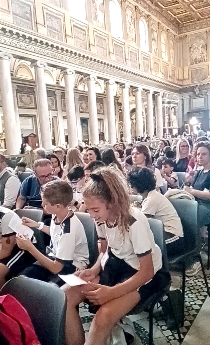 Alunni, insegnanti e genitori. Insieme per vivere il giubileo della Speranza. La partenza in metro e l’arrivo nella basilica. Al passaggio della porta santa è seguito un momento di preghiera preparato dagli alunni, il ringraziamento a Papa Francesco e la liturgia, celebrata per i bambini. A piedi quindi il trasferimento al parco del Colle Oppio per il pranzo e un tempo di gioco. Il rientro in treno dalla stazione Colosseo. Un tempo di gioia e comunità, ricco di Provvidenza e moltiplicatore di Speranza.